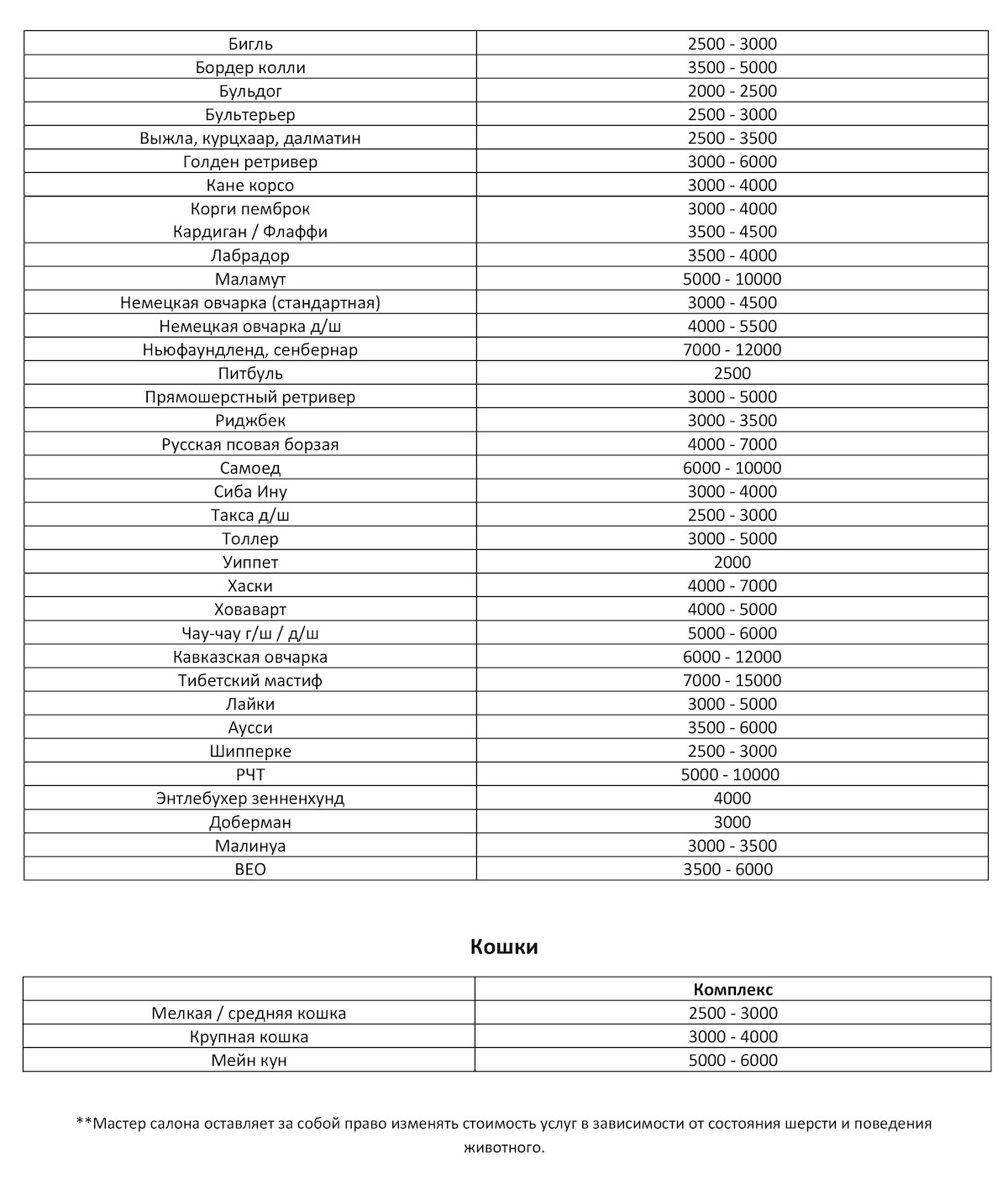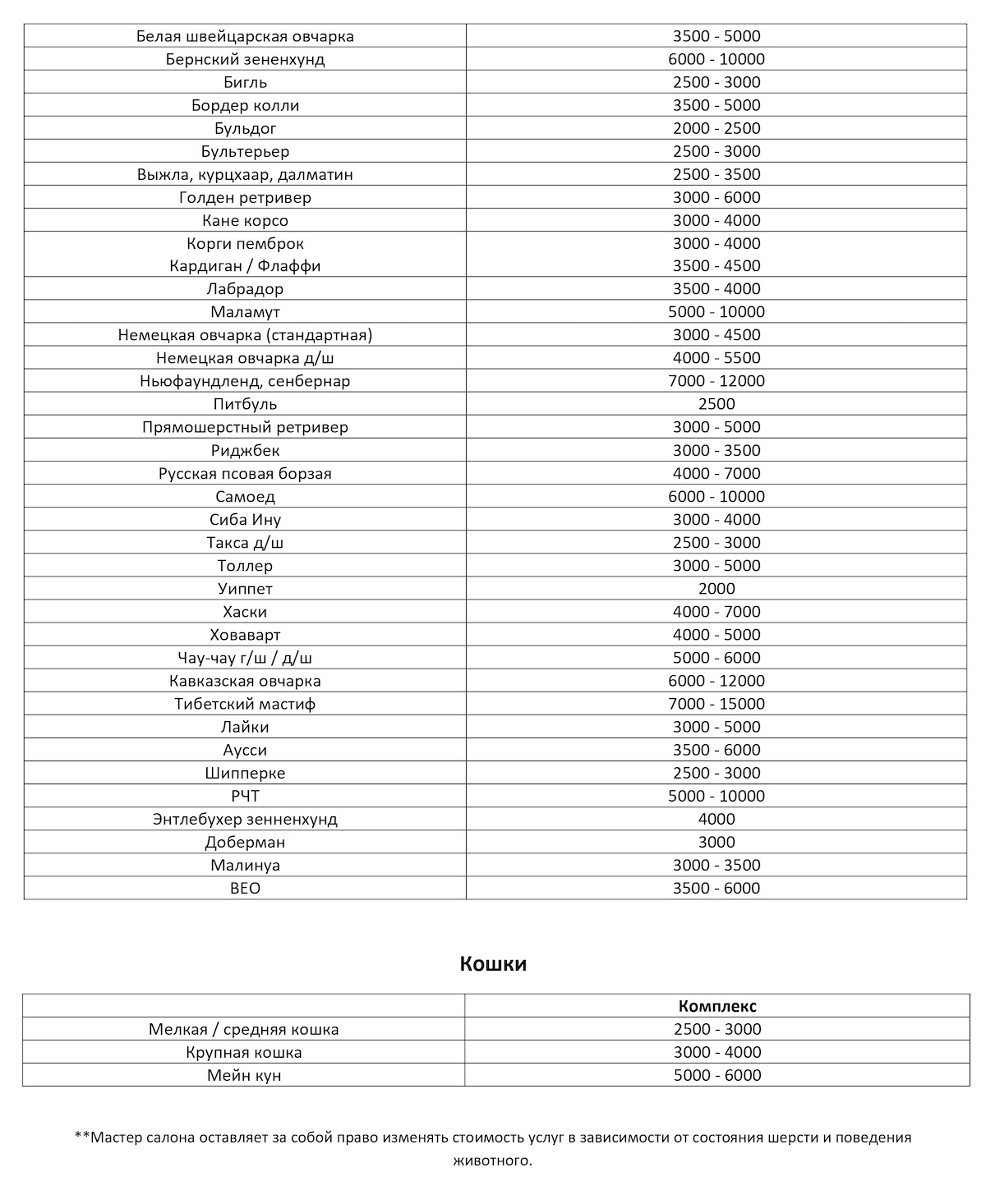 После занятия сушка включена в стоимость, а так же возможен груминг прямо на месте.