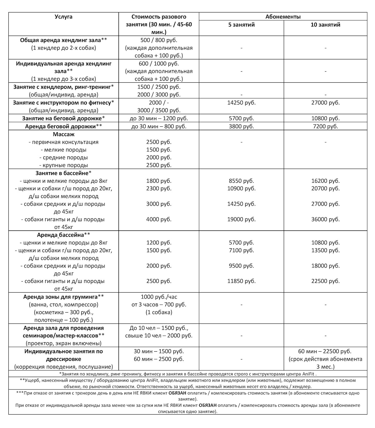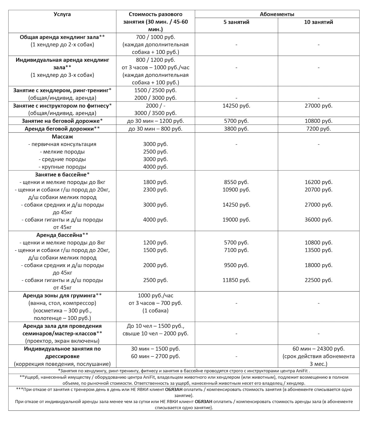 1. На занятия в «Многофункциональном центре для животных «AniFit» (далее по тексту - Центр) допускаются собаки любой породы возрастом старше 3 месяцев. Собаки в возрасте до 3 месяцев в Центр могут быть допущены под личную ответственность Владельца.